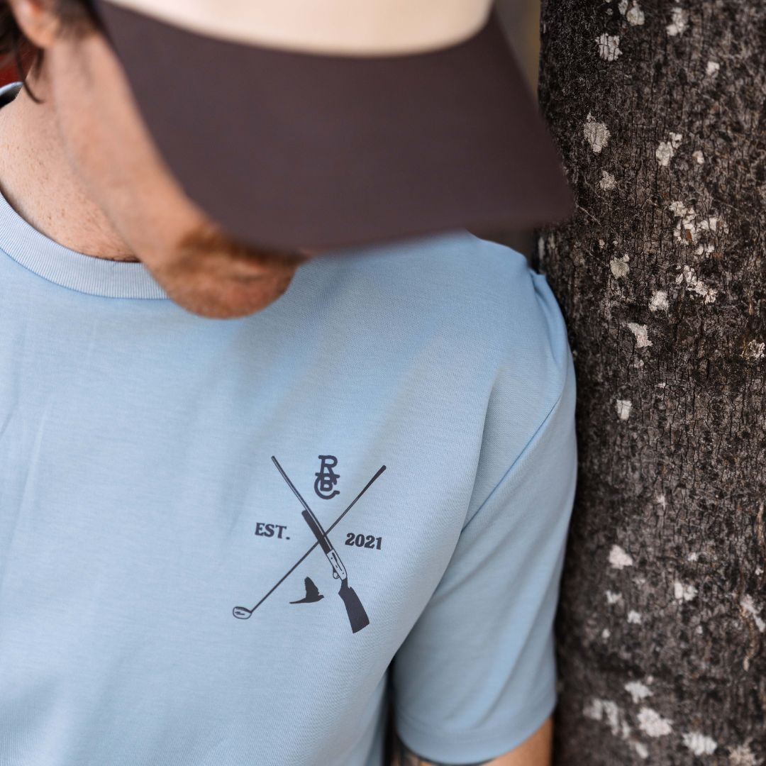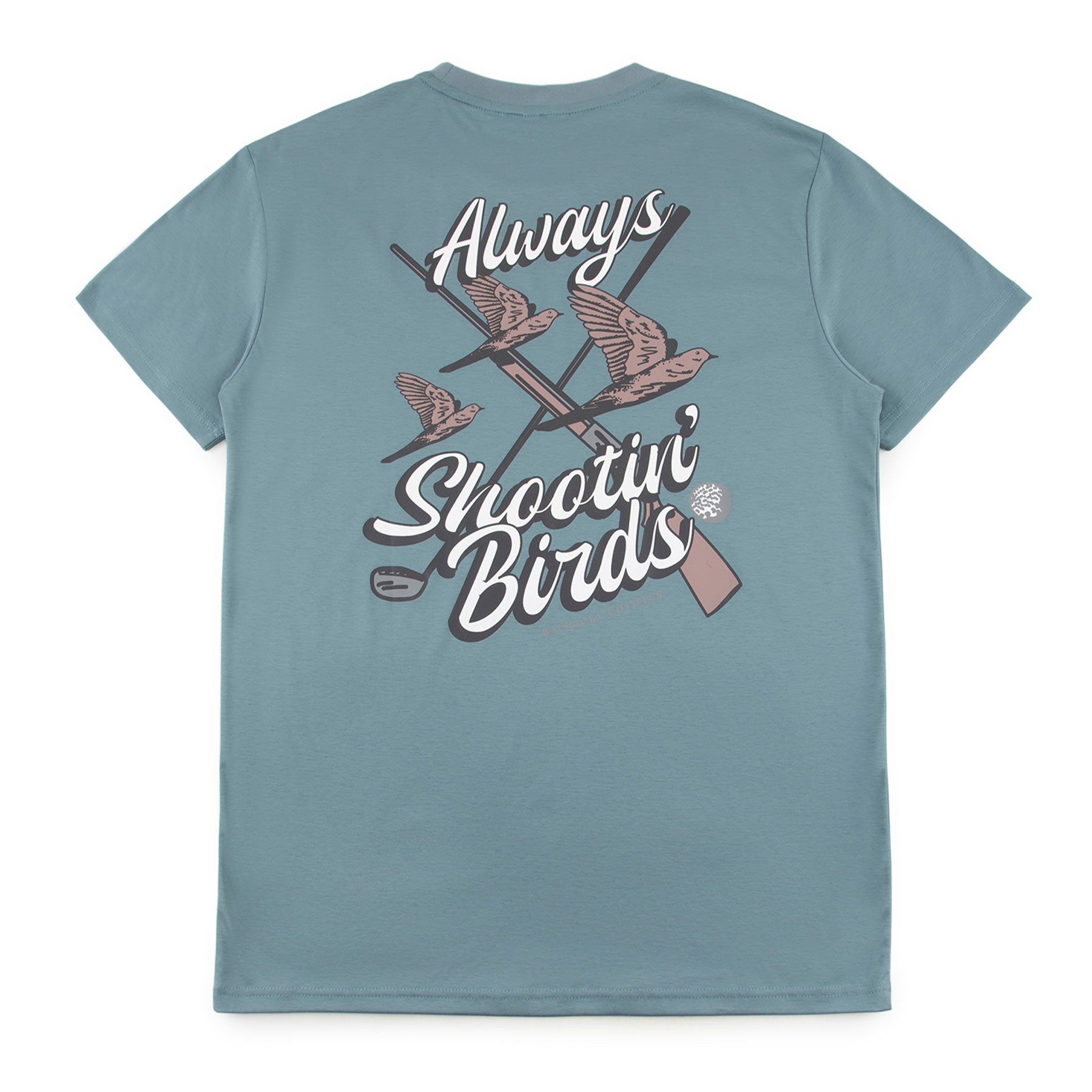 The Always Shootin' Birds Tee is built for the ones who are just as comfortable with a rifle as they are with a 7-iron — and see absolutely no reason to choose between the two. A custom crest on the front chest and a bold back print featuring a rifle, a golf club, and doves in flight say everything that needs to be said.