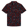 Our TX BBQ Nights pearl snap western shirt features a beef cuts chart, brisket, ribs, sausage and fixin's pattern, pearl snap button down, and embroidered coyote head on the front pocket.