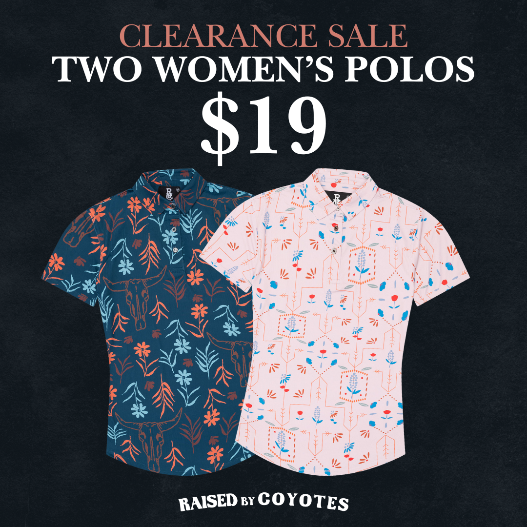What a deal! Get our Skulls & Daisies and Texas Wildflowers Women's Polos for just $19 with our End of Summer Sale.